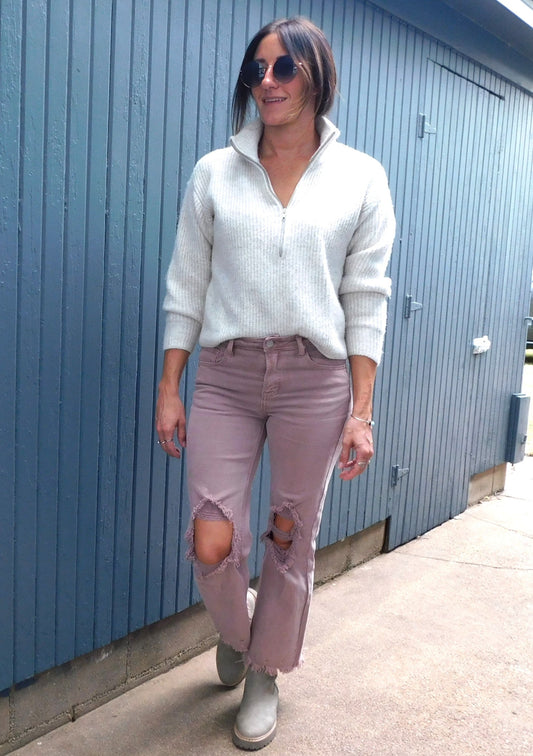 Cropped Mauve Risen Jeans