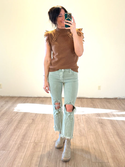 Fringe Sweater Vest - Brown