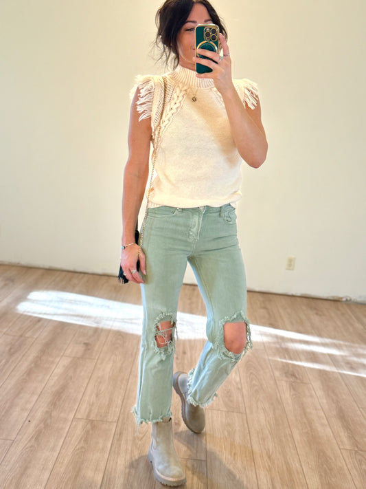 Fringe Sweater Vest - Ivory